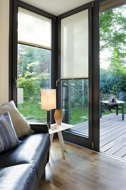 In this Surrey garden, the owner uses this contemporary garden space as a consulting room. As a life coach, it’s vital to provide a location that’s conducive to conversation and confidentiality away from the distractions of the house nearby.