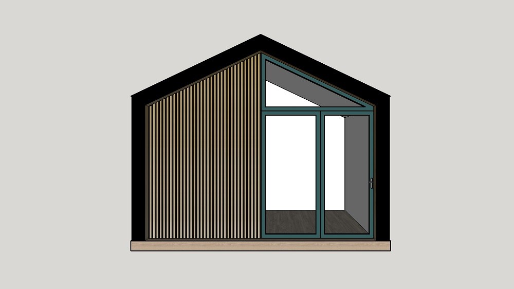 Based on our original design created in 1998, the updated edition of the Shomera range incorporates a single door, a floor to ceiling glazed feature window, an opening window and a profiled tile sheet pitched roof.