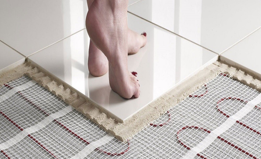 Under tiled floors, we use a different heating system called "Loose Wire". It is designed for use with stone or ceramic tiles only. The system uses a 2mm, ultra-thin, dual-core heating element. The small cross-section of the element allows it to be installed without raising floor levels as it sits within the tile adhesive between the subfloor and the tiles.