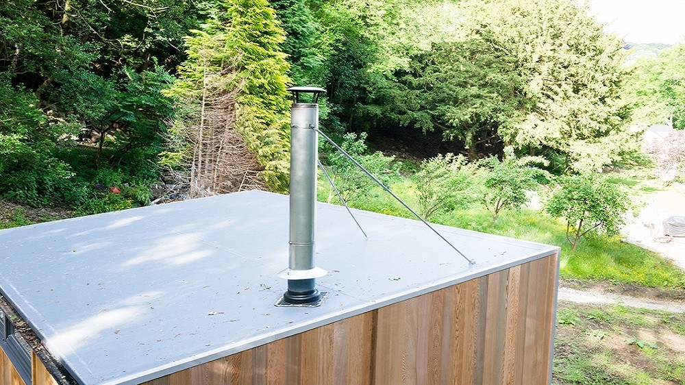 Our mono low pitch flat roofs are fitted with a woven polyester reinforced PVC waterproof membrane. The membrane is adhered to a OSB (plywood) roof deck and the joins are hot welded to provide the very best standard of waterproofing. Once the rainwater collected on the roof reaches a sufficient level and volume, the roof’s inbuilt slope aids water to drain away to the gutter.